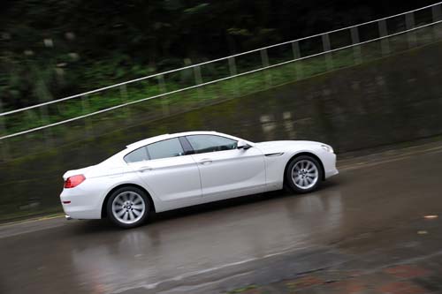 與6系列Coupe相同的中控檯,搭配10.2吋的大型液晶螢幕與原廠內建衛星導航系統,讓多功能整合介面在不受限制的前提下展現真智慧,而不只是一個體積放大的資訊螢幕,唯一讓人感到失落的就是車上並未看到B&O高傳真音響(選配),還好有大天窗的慰藉,讓心情極為悠哉。為營造更舒適的後座空間,車長及軸距同樣比Coupe要拉長113mm,由此可看出重點全在於後座空間的展現,再加上微幅增高23mm的車高,這些改變當然也影響了6系列Gran Coupe給人的視覺感受。面對市場上的競爭者,BMW的動作雖慢了些,不過就一部四門Coupe的標準來看,6系列Gran Coupe依舊維持了高度的競爭力,優美的線條與設計當然是成功的第一要素,再加上BMW原本就已經廣受好評的駕駛樂趣與動力系統,要讓人不喜歡這部640i Gran Coupe還真的是很難。
