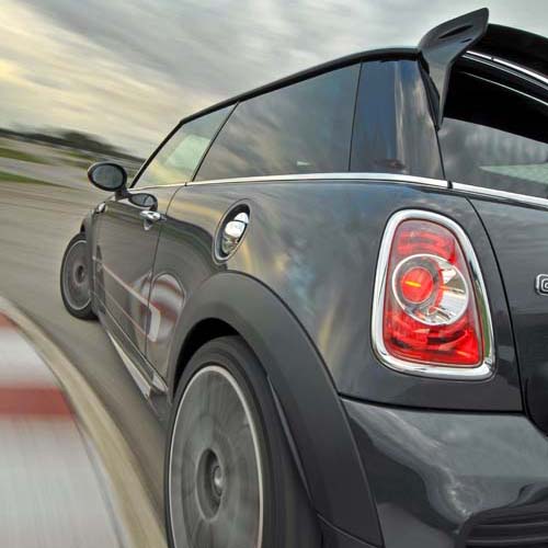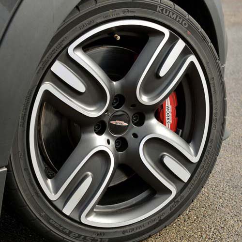 前六活塞對向卡鉗與330mm的通風碟,提供了更晚的入彎煞車時機,運用重心轉移的特性扭轉方向盤讓後輪往外滑出,前驅車轉向不足的特性已被充分抑制,在掌握到此特性後,入彎速度愈來愈快,甚至連輪胎都支撐不住而開始打滑時,整部車的動向依然全在掌控之中,Mini JCW GP的魅力確實難擋,全面的均衡性讓它無需改裝或強化就可以直接下場全力奔馳。