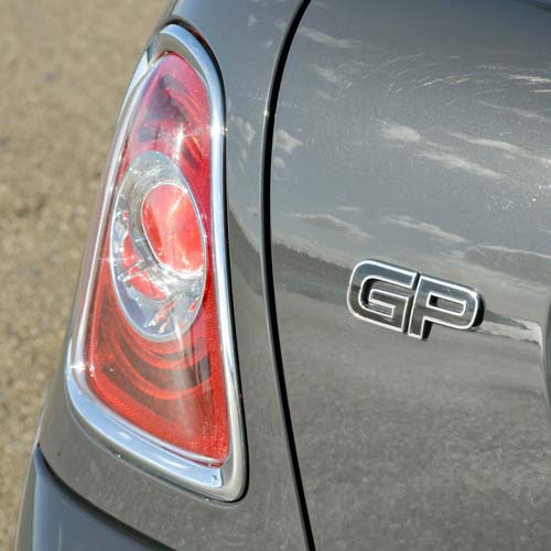 仔細比對Mini JCW GP與一旁的Mini JCW全系列車款,可明顯看出兩者之間的關係,不過Mini JCW GP已特別針對218匹馬力及操控需求,採用專屬底盤設定,尾門也裝設JCW專為GP所設計的大尾翼,提供更高的下壓力及穩定性。拆掉後座的Mini JCW GP只在車廂中加入一根強化剛性的結構桿,車身重心點當然也隨著前後重量分配的改變而前移,會使後輪抓地力降低而造成轉向過於敏銳,因此原廠除了換上高度降低20mm的強化減震彈簧,前避震器也使用可提高剛性的倒插式設計之外,還特別減少前懸吊束角(Toe in)並增加後輪傾角(Camber),讓轉向特性更趨於中性並展現更為穩定的動態表現,再加上賽道用Ecsta V700熱熔胎,造出更犀利的過彎能力,讓Mini JCW GP在紐柏林北跑道創下8分23秒的最快單圈時間,比上一代要快了18秒。