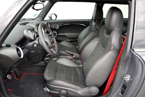 | 前方兩張跑車座椅為Mini JCW GP專屬款式,以麂皮搭配真皮所包覆,在賽道上保有極佳的支撐性。 |