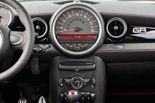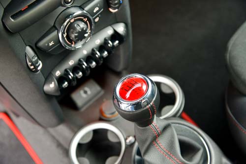 | 紅色上蓋的排檔頭也是Mini JCW GP在內裝方面的特色所在。 |