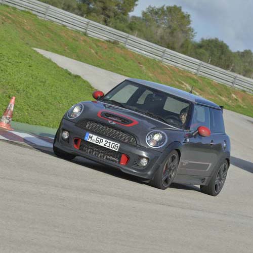 前驅車雖然有著轉向不足的先天缺陷,但只要對它夠了解,依然可以透過後天的調校技術而展現優異性能,Mini JCW GP便是最佳案例,只要對車速、油門與路線的掌控夠細膩,它可以更晚的煞車點入彎而縮短整部車在彎道裡的時間,唯一需要先做好的準備就是緊抓方向盤,因為猛烈空轉的前輪會以最快速度將車子拖離彎角。在賽道裡開著手排Mini JCW GP雖然非常忙碌,但心裡卻是滿足,畢竟這是一部純粹讓人享受速度及駕駛樂趣的玩樂機器,它討你歡心的方式就是奮力鞭策著輪胎,此時你只需計算好行車路線並將跑道用盡,Mini JCW GP會讓你開心得大呼小叫!