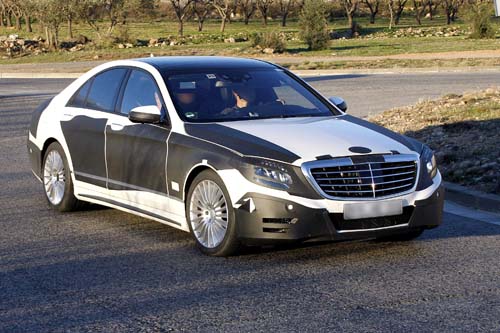 在遮掩幅度甚小的間諜照中,我們可以看到全新S-Class的LED晝行燈採取的是接近菱形設計,水箱罩雖仍採先前的輪廓,但顯然面積變得龐大許多,其他像是前後保桿、葉子板和尾燈造型大致與先行S-Class卻沒有明顯差別。動力編成上,估計S550將搭載429hp最大馬力的V8雙渦輪增壓引擎,高性能版的S63 AMG則還是原先小改款時搭載的5.5升V8雙渦輪增壓引擎,S600和S65 AMG是否將繼續V12引擎則是未知數,然而最引人矚目的,就是2009年的VisionS500 Plug-in Hybrid將如期於新一代S-Class上實現,未來的S-Class除了強大動力及豪華內裝外,駕駛者也將能享受到每公升跑30公里的燃油經濟性,這在過去是相當難以想像的一件事。此代新車在外觀上做微幅調整,但車型編成上預估還是會推出Coupe、Convertible,同時長軸車型Pullman則將取代Maybach車系品牌的地位,屆時S-Class肯定將擁有家族中更加獨一無二的頂級豪車地位。賴震宇