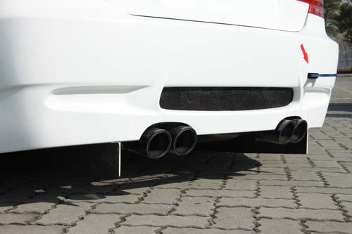 | 由車底向後延伸的後下分流器與氣流導孔不僅有助於破壞底盤所產生的亂流,同時也可加速氣流通過在高速時產生更大的真空吸力。 |