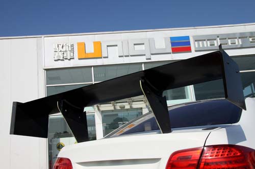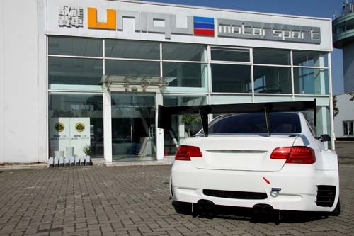 雖然BMW E92 M3先天所擁有的高運動特性早已成為市售性能車種中所公認的指標之一,但是為了能夠在賽道上徹底發揮出最為強悍的戰力表現,光是只有動力方面的提升似乎不夠全面性,為此從底盤重新著手的性能強化才是符合操控所需,然而為了達到上海國際賽道(全場5453m)能夠跑出2分5秒的目標,車主便決定替自己的E92 M3進行大幅度改裝。由於改裝幅度與困難度都算是極大的工程,為了有效確保車輛後續穩定性與耐用度,因此也委託擅長歐系車改裝與賽道設定的UniqueMotorsport完全操刀,除了大刀闊斧進行外觀移植M3專用GT2寬體套件,同時採用競技與輕量化的底盤設定,目標打造出最速M3賽道式樣。