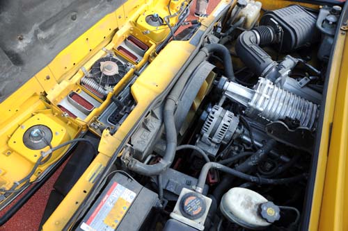 或許大家會認為外型粗獷剽悍的悍馬,就是一部用來翻山越嶺的越野車款,跟「性能」這兩字可能一點都扯不上關係,但這部改裝H2卻會讓人對悍馬從此改觀。此車原本搭載的6.2升V8汽油引擎,已經具備了393匹、57.4kgm的強悍性能,而在加裝Magna Supercharger機械增壓套件之後,性能輸出更是令人咋舌,最大馬力一舉大幅提昇了127匹來到了520匹之譜,且峰值扭力也增加至74.0kgm,廠方0~100km加速僅需8.7秒,極速更可高達200km/h以上。但需強調說明的是,上述廠方所公佈的加速成績為搭配20吋全天候道路胎,並非此越野專用的大胎塊輪胎,不過此H2車主則以儀器自行測試而獲得了9.85秒的加速成績,雖然數據並非亮眼,但要知道一部幾乎兩層樓高的越野悍馬能跑出此成績確實已經是非比尋常了。