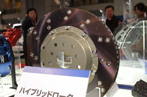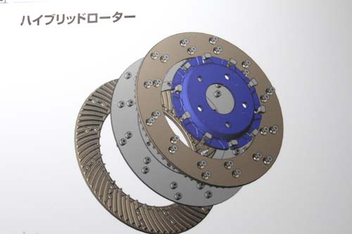 | 這組盤面鎖上許多螺絲的碟盤也是該廠最新推出的新品,在上下兩片碟盤中鎖上一片金屬圓盤,這樣設計的目的,可提高碟盤本身的抗變形能力,並且提高碟盤本身的散熱效果,提供更穩定的制動效果,可說是浮動式碟盤的進化版。 |