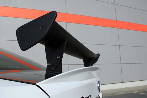 | 雖然碳纖維尾箱能減輕車身重量,但是為了增加車尾下壓力以提高抓地力,這時裝上可調式碳纖維尾翼則可適度利用氣流以優化空氣動力學。 |