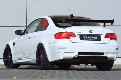 為了增強車輛的性能與表現,最常見的升級方式不外乎提高引擎輸出效能,或者減輕重量負擔以達到更好的重量馬力比,為此G Power除了先前曾針對E92 M3推出高達720hp的機械增壓套件,同時也開發出RS版碳纖維空力套件,藉此以有效降低車身重量同使能夠獲得更好的空力效能。從外觀上可以清楚看見G Power在不變動原廠M3外觀的基礎下,採用碳纖維材質的前下擾流不僅能夠增加車頭下壓力,同時擾流上兩側新增的氣流導孔配合導風管設計更能有助於煞車系統的散熱。