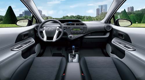 Prius c將人性科技注入車艙設計中。多功能駕駛切換模式,可依不同路況選擇純電動的EV模式,或油門反應及空調設定最佳化的ECO模式,將燃油消耗及能源使用效率最佳化。USB讀取裝置與Aux-in外接音源轉換功能,隨時連結MP3 Player、iPhone及iPad等外接裝置,播放你的專屬音樂。方向盤觸控顯示科技在調整音響、空調、多功能顯示幕時,只要以手指觸碰控制鈕,欲操作的項目便會顯示在儀錶上。全彩油耗得分顯示螢幕,讓駕駛者易於判讀操駕現況,環保結合駕馭,更加充滿樂趣。此外,諸如Push Start引擎觸控啟動系統、智慧恆溫空調、3.5吋TFT液晶顯示資訊幕、方向盤前方置物空間,以及中央扶手附置物箱等設計,都流露Toyota為駕駛者所考量的貼心、舒適、便利與安全。