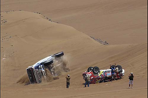 就像危險的曼島TT一樣,充滿無法遇期險象的達卡拉力賽,幾乎每年都會發生死亡意外。今年1月 11日,25歲的法國車手Thomas Bourgin在前往當天位於智利山區的發車地點時,與一部逆向而來的 警車發生嚴重對撞。當緊急醫療隊趕到現場時,Bourgin已然氣絕,據研判他應該是當場死亡。這 是Bourgin首度參賽達卡,意外發生前,他還跑在總排名第68名的佳績。這場意外令眾車手同感唏 噓。