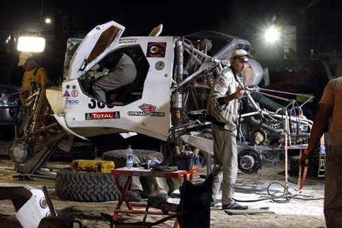 | 入夜之後,維修人員與車手仍須搶修車輛,以趕上隔天的新賽程。 |