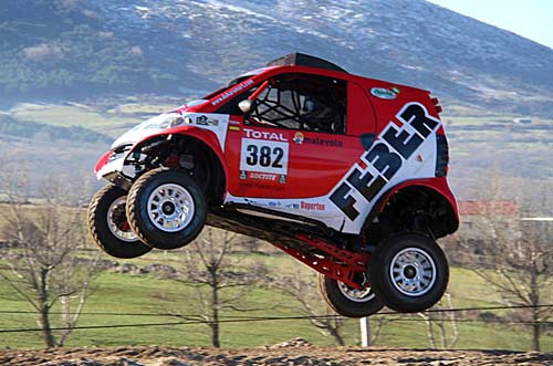 這位老兄是來亂的嗎?竟然把都會小可愛Smart帶到這麼危險的地球環境來?其實,早在Jose Luis Alvarez之前,就已經有人把諸如Renault 5、Citroen AX等小車丟到達卡沙漠上,結果一樣跑得嚇 嚇叫。更何況,它的車手還曾是第一位以四輪越野車征服達卡的西班牙人!這部改裝成符合參賽規 格的Smart Buggy 4×4,不但將車身墊高、使用越野胎,還採用了XP 900 Polaris的4輪驅動 系統。可惜,Alvarez在改裝車輛上花太多贊助商的資金,使得他們最後因籌不到更多資金而趕不 上賽程。希望明年能看到這部Smart在場上飛躍。