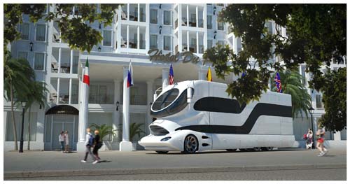 有錢人的玩具選擇很多,從近6,000萬美元的私人噴射機、比佛利山莊的觀景豪邸、十二分鐘內便可讓100公升油箱見底的Bugatti Veyron 16.4,到價值超過800萬美元的遊艇「日蝕號」,集天下財富於一身的巨賈之收藏可謂上天遁海無所不包,因此在無底限的購物慾望驅使下添部「行動豪宅」等級的車屋一點也算不了什麼;但是在窮奢極侈的寬敞空間和富麗堂皇的車艙內裝用料下,最新的頂級Recreation Vehicle到底還具備那些功能來引誘這些員外們掏出白花花的大把銀子?