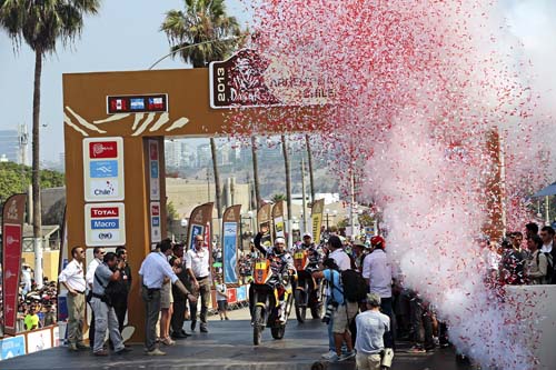 | 去年的終點站Lima成為今年的起點,而去年的機車組冠軍Despres則在開幕式中獲得英雄式的歡迎。 |