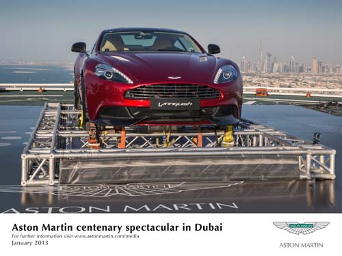就在Vanquish問世後3個月,全新的DB9也緊接著登場。歷久彌新的優雅造型之下,有超過70%的車體零件經過重新研製。全新DB9的加入,讓Aston Martin的新世代車系產品線得以真正完滿。從性能化的Vantage車系、經典的DB9和豪華的Rapide,到終極GT跑車Vanquish,Aston Martin以創廠百年來最堅實的車款陣容,邁向下一個一百年。今年,Aston Martin慶祝它的百年成就,同時也是由世界上最美麗的跑車所傳承而成的世紀歷史。全球各地的慶祝活動皆熱鬧展開,要與所有公司經營者、支持者和合作夥伴一同喝采。這些活動包括今年7月會舉辦的百年特別週,屆時將會有史上最大規模的Aston Martin車輛陣容,在倫敦的市中心集合展示。擁有無與倫比的歷史遺產以及傳承,Aston Martin將大步邁進第二個百年紀元。這家英倫車廠將以全新的資本實力,以及有史以來最堅實的車款產品陣容,來獻給全球的車迷。
