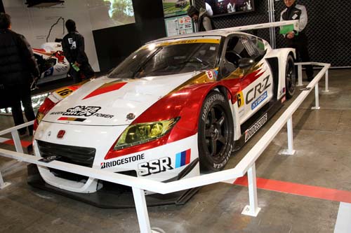 作為日本賽事最高競技舞台的Super GT,Mugen同樣也在會場上展出GT 300廠車CR-Z GT,礙於原廠四缸引擎所能夠發揮的動力有所限制,為此Mugen直接改移植2.8升J35A V6引擎,配合雙渦輪增壓系統即可輸出296hp,加上原有電動馬達驅動後可綜合榨出363hp,傳動系統則是搭載六速序列式變速箱與後輪傳動。外觀上可以看見採用碳纖維材質打造的空力外觀盡可能有效利用空氣動力學,包含前下擾流、寬體葉子板、尾翼與後下分流器,有效提供廠車所需的下壓力與穩定性,而Alcon前後六活塞卡鉗則負責掣動力所需。
