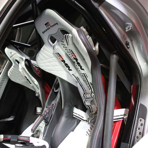 底盤方面,藉由換上18吋BBS輪圈、運動化懸吊與GRMN煞車系統,如此一來也能與外觀風格更匹配。由於座艙內Gazoo Racing是採用黑白風格的鋪陳手法,因此包含防滾籠、賽車桶椅、四點式安全帶與三幅式方向盤,這都是作為挑戰紐伯林大師賽中不可或缺的標準配備。