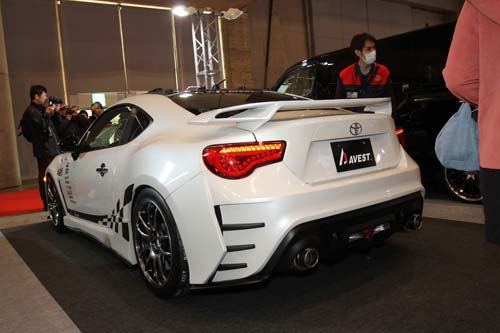 這間Avest是以推出各種車用燈具聞名的品牌,尤其是LED相關產品的種類更是齊全,而這款GT86的空力套件則是該廠首次跨行打造出來的產品,整組套件以直線與銳角為主要風格進行設計,前保桿的氣壩並非常見的方形開口,而是透過特殊轉折處理,來提昇造型質感,並適度的將長形日行燈與三角形方向燈,安裝於保桿兩側。後保桿左右兩側以同樣手法將三道黑色橫條設計於其上,企圖營造更具動感的車尾造型,整組套件給人一種不太協調卻醒目的感受。
