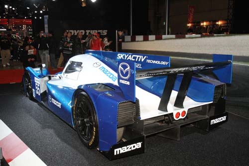 由轉子引擎跨入柴油渦輪增壓引擎領域的Mazda,為了延續1991年首度也是史上唯一由日本車廠奪得利曼賽事冠軍的殊榮,因此Mazda日本原廠與北美Mazda及美國佛羅里達的SpeedSource Engineering團隊共同操刀,藉由Skyactiv-D柴油渦輪引擎為基礎,目標在今年利曼賽事Prototype 2(LMP2)等級中再度展現奪冠的氣勢。在2.2升四缸柴油渦輪引擎配置下,由於引擎本體強度高並且採用低壓縮比,因此在Garrett雙渦輪增壓輔助後,最大馬力輸出預估可突破420hp/5200rpm,扭力表現更是達到69.8kgm,引擎重量更是控制在148kg。藉由如此低汙染的動力系統參賽不僅將開創日系車廠未來發展的新創舉,同時對於老牌歐系柴油引擎車廠包含Audi與Peugeot也會面臨新的競爭者的直接挑戰。