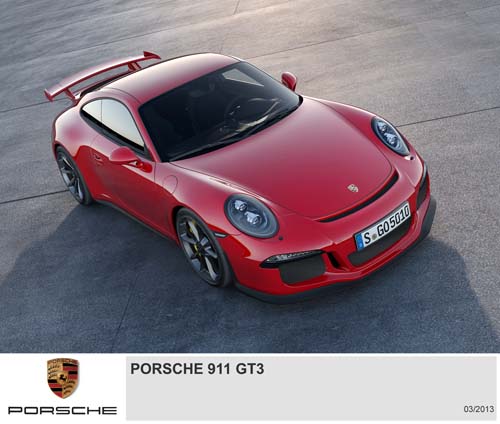邁進2013年,Porsche除發表了寬體四驅版的Carrera 4與Carrera 4S之外,更重要的是為紀念911車系誕生50週年而發表的Type 991911 GT3。除了保有一脈相承的自然進氣引擎,GT3更採用寬體及後軸加寬44mm設計,其3.8升水平對臥6缸引擎可輸出475hp馬力,0~100km/h加速3.5秒、極速315km/h,Nurburgring Nordschleife單圈成績達7分30秒以內。新款GT3搭載經Porsche Motorsport調校之PDK雙離合器變速箱,且首度配備前軸電子動力輔助轉向機,及後軸主動轉向輔助系統。此款911 GT3將於今年8月在德國率先上市,售價約為台幣531.4萬元。