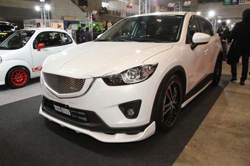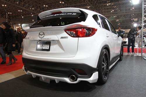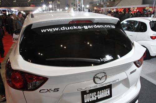 這次前往採訪時筆者發現日本當地的熱門改裝車,除了一些國內車迷熟悉的車種外,還有一部台灣有賣卻沒什麼在改的車,那就是Mazda CX-5,會這樣筆者並不意外,因為這部車在台灣賣得並不便宜,要價130萬元,而且搭載的2.0L Skyactiv-G直列4缸引擎,所具備的重要怠速熄火功能還被閹割掉,因此賣不好是可預期的,也因為如此更不容易在台灣看到改裝實車,不過筆者還是決定花些版面,介紹這部車的改裝玩法,讓大家見識一下這部車多樣的風貌。首先看到的是這部ducks-garden所改裝的CX-5,Tuner為其改裝的水箱護罩、前下巴、左右側裙、雙層尾翼與後下擾流器等,讓原本家庭化走向的CX-5,變得衝勁十足。