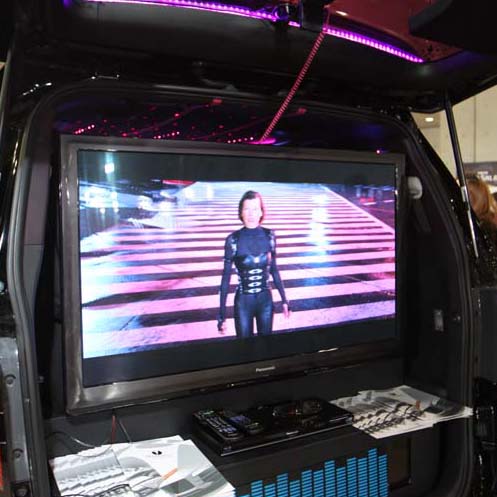 | 46吋家用大尺寸液晶電視容納在後廂空間雖然相當吸引路人目光,但是若不能夠轉提供座艙內乘客觀看,似乎也喪失了視聽劇院的初衷。 |