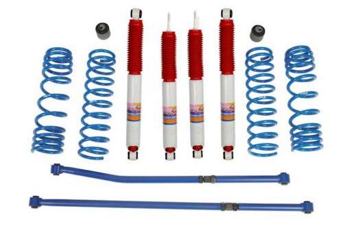 Top-R加高避震器套件符合眾多Jimmy車主的需求,其短小的車身軸距、輕巧俐落的車型,加上改裝後的寬廣視野,獨樹一格的車體高度,展現不同凡響的越野驅駕性能,含四支舉升彈簧/可調式避震器/偏心軸鐵套、兩支可調前後拉桿。