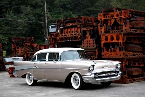 另一輛1957年Chevrolet Bel Air的外觀設計概念與Eldorado有著相同的邏輯,都是以「航空器」為模仿對象,這點可從車尾的垂直翼片看出端倪,同時此造型也成為後續推出車款爭相模仿的對象,除了經典的造型外Bel Air在美國之所以暢銷的另一原因,在於此車僅2511美元的平實售價,因為車廠將此車定位為家庭用車,但又擁有與Cadillac相似的外觀電鍍設計,雖然動力部分僅搭載283立方吋(4636c.c.)OHV V8引擎,動力也僅有283hp的輸出,但便宜又大碗的策略下讓Bel Air一年的銷售量就突破150萬輛,一直到現在Bel Air仍然是許多老車玩家爭先收藏的首選。