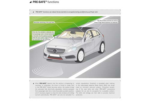 | A-Class全車系標配了PRE SAFE主動安全防護系統。 |