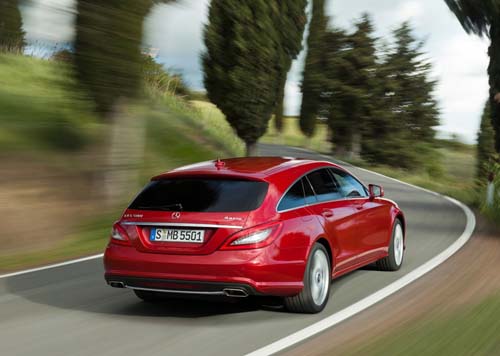與所有旅行車相同,CLS Shooting Brake立基於CLS的基礎上,也因此其在B柱之前,有著與CLS如出一轍的造型設計。結合了新世代的家族面貌,碩大的水箱罩與三芒星廠徽,帶領銳利且流線的頭燈、氣壩與晝行燈給與人霸氣且強勢的視覺印象。車側的明顯肩線一路往後傾洩,停止於後輪拱前,因此強調出後輪拱的氣勢。延續CLS車尾收攏集中的手法,CLS Shooting Brake也採相同方式,掀背的圓潤線條壓低了旅行車的後格局,也讓此流線主軸可以頭尾一致的完美呈現。看似低趴寬扁的車身比例,讓CLS Shooting Brake有著較CLS長上16mm的車身長度,高度更降低了3mm,不過卻不影響出色的空氣力學,CLS Shooting Brake擁有0.29Cd值得超低風阻表現,且有著相較CLS更出色的空間機能。
