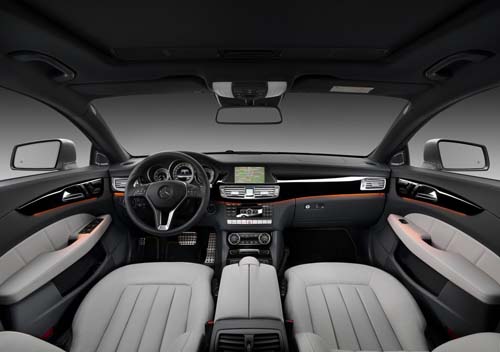 有著與CLS相同的車內格局,豪華與設計感共存,且為了呼應車格的創新活潑,導入了五種內裝配色與五種內裝設計,讓車主可依自身喜好於亮光核桃木、亮光白蠟木、白楊木等飾板中找到最對味的駕乘氛圍。與CLS車型最大差異的後廂處,透過不同設計的尾廂線條,CLS Shooting Brake在標準五人乘坐時就可具備590公升的出色容積,且在後座椅往前傾倒打平後,更可擴增至1550公升的水準。除了實際的容積數據,為了展現與過去狩獵用車的對話,更使用原木材質打造後廂底板,搭配鋁合金打造的導軌與尾門上的鋁合金門檻,更呈現仿若豪華遊艇般的氛圍。