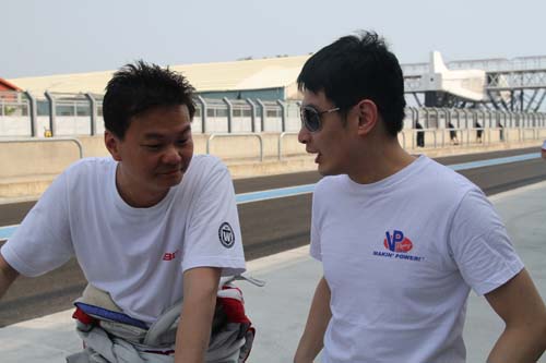 | 為了如何能夠精確掌握Lamborghini Super Trofeo的操控特性,國內方程式好手也是代表Team Mayer出賽的林帛亨特別在賽前與BC Racing黃錦章進行攻守教學。 |