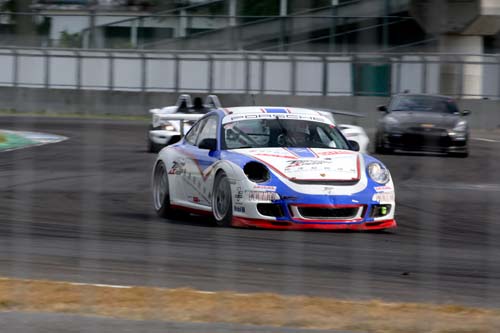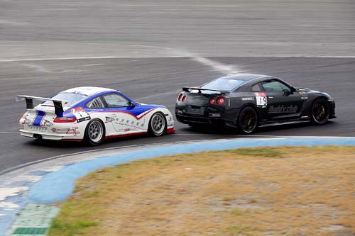 | 要突破直線加速佔有極大優勢的GT-R也只能靠Porsche Carrera Cup在彎道中凌厲的進攻,所幸激烈攻防戰之後也只有損失一顆「青蛙眼」。 |