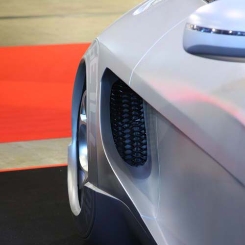 依照現行車輛設計的法規來看,要完全顛覆既有車體的框架似乎稍微有難度,不過若是能夠巧妙延伸車身鈑件與胎圈進行結合,這似乎在造型與操作難度上就顯得更為輕鬆,這輛同樣由埼玉自動車大學所操刀的Audi TT除了賦予寬體外觀以營造出更具性能的運動感,極為誇張的後葉子板更是將後輪完全包覆,藉此呈現出貼地飛行的未來概念車,想讓人一窺真實的胎寬設定都是相當神秘。