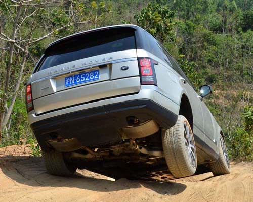 新Range Rover給人感覺雖然是標準的LSUV ,但實際骨子裡仍是一款血統純正的越野車,傳動系統配有自動控制的加力箱,在車速低於60km/h的條件下自動切換,驅動力可從原本的1:1調整為2.93:1,面對艱難路況與地形時可展現強大牽引力,而前後驅動力分配在標準狀態下為前後50:50,不過電子控制的多片式離合器中差可提供鎖定與扭力調配功能。當然,這些若還無法滿足你的需求,原廠在頂級Range Rover V8 S/C車型上還提供了主動式後差鎖定的選配。