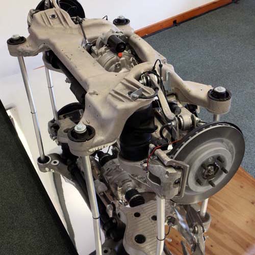 | 主動控制的氣壓避震器會依據行車模式的選擇而提供四種不同高度的調整,且懸吊結構均使用鋁合金製品。 |