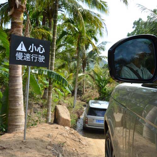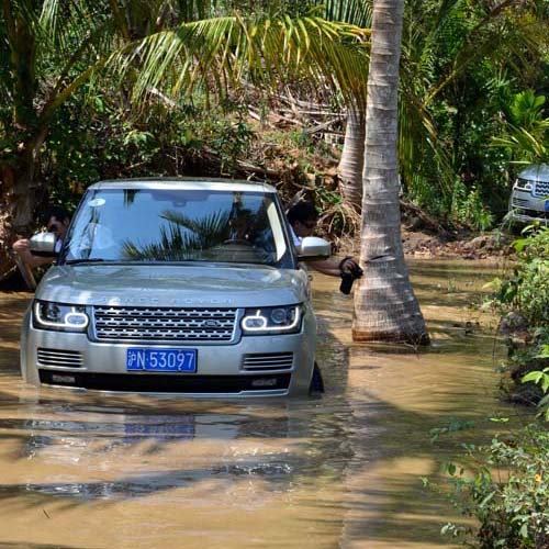 | 水面高度雖顯示車輛有進水的可能,但實際上新Range Rover採用獨特的外包式車門設計,水完全進不到車艙裡。 |
