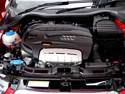 所以理論上來說,同時使用兩種增壓系統是效率最高的增壓系統,在過去因為開發成本過高,以及可靠度不佳的問題,少有車廠運用在量產車上,不過1.4 TSI引擎的量產,似乎代表VAG集團對於自家的製造技術與設計能力有著充分的信心。不過要同時使用兩套增壓系統,引擎本身以及周邊系統相對須有所強化,才足以因應付雙增壓系統所帶來高溫/高壓的額外負荷。為此1.4 TSI的氣缸上座採用傳統的鑄鐵材質,沒有跟隨時代潮流改用鋁合金材質,原因在於灰鑄鐵的剛性與強度較佳,較能承受雙增壓的負荷。活塞部分是鋁合金壓鑄而成,且為了順應缸內直噴的油氣混合需求,活塞頂部形狀乃透過電腦模擬設計而成,可使進入燃燒室內的空氣形成穩定的渦旋氣流,加速與燃油的混合速度,而活塞裙的表面則經過滲碳硬化處理,以增強硬度並降低與汽缸壁間的摩擦力。至於曲軸則採鍛造材質,不但可增加耐壓強度,且平衡性較佳的特性,也可降低運轉震動情形。其實這顆引擎早在2006年時就已發表,當時搭載的車型為Golf GT MK5,且一直沿用到現在,最新搭載的車型為Audi A1,筆者就透過這部車,來為這顆引擎進行更仔細的介紹。