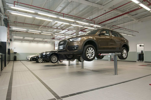 寬敞明亮的展示區可同時停放8部各式Audi全新車款,賓至如歸的賞車環境也讓準車主擁有舒適愉悅的好心情。至於展示中心後方的佔地偌大的保修服務廠,不但設置了6個專屬維修工作車位,搭配1組昂貴的四輪定位機台,齊全完善的設備同步提供車主最頂級的維修服務,堪稱是中台灣地區最新穎奢華的汽車展示中心之一!台灣奧迪汽車未來將持續以積極進取的經營策略,深耕台灣頂級豪華房車市場,而全新Audi彰化全功能展示中心落成之後,也將讓更多中部地區消費者,得以近距離品味Audi四環品牌的不凡魅力。