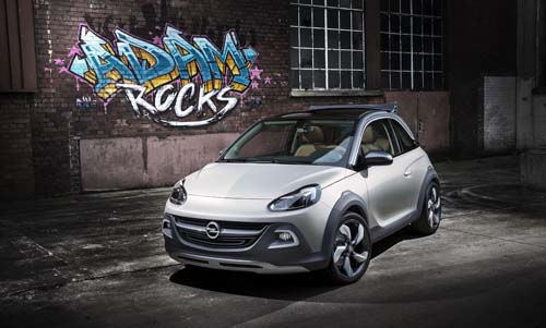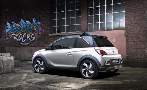 Opel Adam Rocks Concept是此次盛會中小型概念車的最大驚奇,這部都會跨距三門車款的設計概念結合了Adam車系極為小巧的車身比例以及小型跨距休旅的精幹結實,同時更兼具全景式敞篷的獨特魅力,各項時下都會車令人愛不釋手的優點集於一身卻怎麼也比不上男女眼光通吃的討喜外貌。Opel Adam Rocks概念車外型最搶眼的地方便是由鐵灰色塑料包覆的水箱罩橫桿及保險桿一路延伸到前輪拱、側裙、後輪拱和後保桿等處,A柱到C柱也運用同樣的材質營造相同風格,較一般Adam車款寬40mm和高15mm的體型則提昇不少運動性格。電動啟閉式軟篷可收折至C柱上方,如此配置可確保後方置物空間不受到影響,造型也類似於Fiat 500C與Citro?n DS3 Cabrio的設計,車內則配備IntelliLink多媒體視聽娛樂系統具備無線上網功能,當然你也可以外接行動設備作為播放來源,享受美景之餘也可同時擁有視聽饗宴。即便未來Opel Adam Rocks若真投入量產,引進台灣的可能性依然微乎其微,因此光是盯著這全景式掀頂美好風光以及Adam獨特且時尚的設計語言,光是美感便讓人忌妒到無以復加。