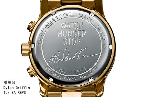 Michael Kors很榮幸的宣布推出兩款經過特別設計的暢銷款Runway系列腕錶,來支持品牌戰勝飢餓WATCH HUNGER STOP的活動。 每銷售一只腕錶,將可以幫助100名受飢餓所苦的孩童獲得一份營養的餐點。Michael Kors 近期宣佈與聯合國世界糧食計畫World Food Programme長期合作募款來協助戰勝全球飢餓。這個多元化的活動是以舉行不同形式的活動喚起廣大社會關注,並推出特別產品以籌募善款。