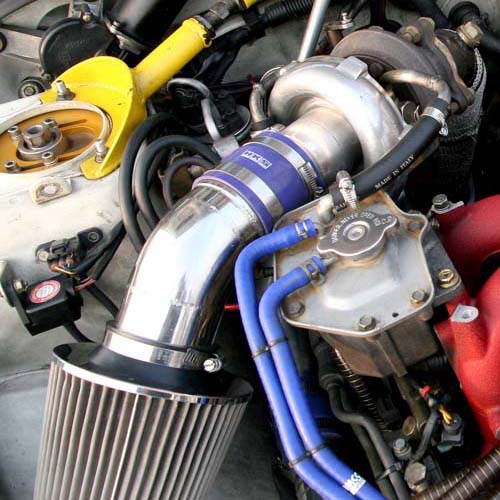 Turbo引擎相較於自然進氣引擎,其硬體方面必備多出以下的零件:排氣頭段、渦輪本體、排氣前段、進氣冷卻器、進氣管路、進氣洩壓閥、與排氣洩壓閥等,渦輪增壓引擎作動的順序,首先是由廢氣流入排氣側內,然後一邊推動排氣葉片、一邊自中央出口排出,流向Front Pipe到中尾段排氣管,然後高熱的廢氣便會排向大氣中。而在「排氣驅動輪」開始動作的同時,位於相反側的「進氣壓縮輪」也會跟著轉動,將新鮮空氣從中間的進氣口吸至壓縮室中,然後從側邊的出氣口中將空氣開始往引擎輸送,不過新鮮的壓縮空氣在進入引擎內前,會先通過中冷器降低空氣溫度後,才會被壓送至汽缸內爆發。