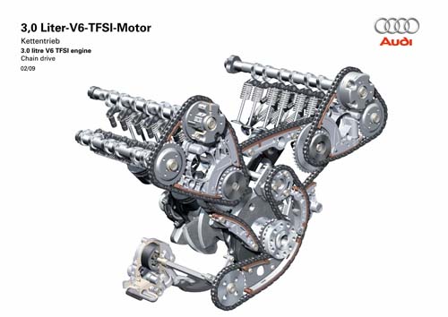 | 這是VAG旗下2.5 TFSI引擎的燃燒室透視圖,該廠的噴油嘴採用斜放配置,與其他車廠常見的上置方式不同,用意在結合獨家的「分層進氣」系統,讓燃油與空氣能混合的更加完整。 |