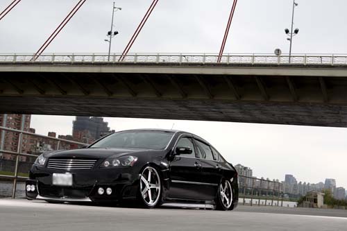 日系車款中有不少頂級車款品牌,很多是主打高級主管族群,以這部Infiniti M35來說,2005年正式導入國內市場後,確實成功打入中壯年車主市場,中大型房車讓車型上具有更多線條輪廓設計發展空間,對於Infiniti品牌來說,原有外型老態的車型概念在近年有市場年齡下降的趨勢,動感外形建構之下讓該車充滿駕馭樂趣!這部Infiniti M35的車主在進行該車改裝前,就詳細蒐羅該車相關改裝資訊,為的就是希望能創造出不同於該車的改裝風格,基於車主本身對改裝車輛的熱愛精神,對於該車的國內外改裝技術資源都不放過,但是礙於國內的改裝市場對於該車的寵幸不如其它熱門車款,全車許多改裝套件甚至還是車主自行與廠商美國越洋通話討論完成的,以全車20吋的Trafficstar RT5大腳輪圈來說,為了滿足車主不希望過重胎圈負擔,拖累車輛走行的輕盈姿態,特別商請廠商客製化訂作出此圈,加上不希望加裝輪圈墊片外移輪圈,因此還詳盡列出Rotora前6後4活塞煞車卡前及加大碟相關尺寸,實際安裝後確實閃過煞車卡鉗,滿載充斥的飽實感在視覺上,細膩精準的工程結構設計之下,更顯出車主期望的霸氣風範。