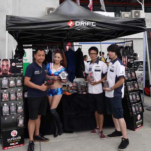 本次一同參與O.T.G.P.賽事運動的廠隊Buddy Club AAI全美國際,當天除了有當家車手陳俊杉與Morris在賽道上完美的精彩演出之外,在自家品牌經營上也有專業的產品推薦,除了保護車手安全的各類防護配件之外,近期更引進了來自英國知名DRIFT運動型攝影機,雙向無線遙控器方便進行任何操作,WiFi連結功能更是大大提高使用機能,可即時上傳至手機或是監控顯示器,支援無線下載檔案到手機或電腦上,對於記錄激烈的賽事實況相當實用順手,高效能攝影效能絕對能滿足你的使用需求!活動現場還設置Rockstar運動機能飲料提供車手免費試飲,讓所有下場參賽車手補充流失水份,提升車手自身體能,體驗前所未有的運動車手服務!