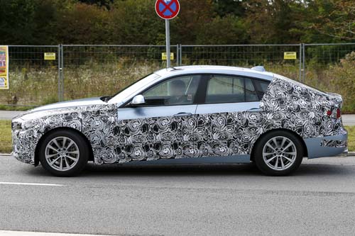 | 從車側來看,正式推出的3 Series GT如同間諜照被捕捉到的身影,不但擁有Coupe般的Fastback,車側線條和後照鏡等處也如出一轍。 |