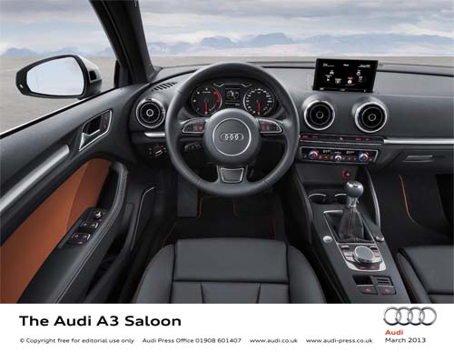 前期會先在德國及歐洲其他國家上市的A3 Sedan,其動力系統將由三具直列四缸引擎組成,而這些引擎也將擁有家族科技的整體優勢,那就是精準的燃油缸內直噴技術及先進的渦輪增壓系統,而三種動力型式更可提供極為強勁的輸出水準,為此小型車款帶來更驚人的駕馭感受。2.0升TDI柴油、1.8 升TFSI和1.4升TFSI汽油引擎可分別輸出150hp、180hp和140hp最大馬力,以及32.7kgm、25.5kgm和25.5kgm的峰值扭力水準,至於油耗則以2.0 TDI表現最為優異,24.3km/L的平均油耗數據遠比1.4 TFSI的21.3km/L還要可怕。至於同步推出的S3 Sedan想當然在動力輸出有著更為卓越的300hp最大馬力和38.7kgm的最大扭力,S tronic 7速自手排變速箱讓0?100km/h加速4.9秒便可完成,此外Quattro四驅系統也是此高興能版本的必備武器之一。A3 Sedan的絕佳油耗和驚人加速性能要歸功於高科技的輕量化材質,由於車艙採用熱塑鋼材打造,引擎室則運用全鋁合金材質,因此車體才能獲得更輕盈的車重及更高的強度,大幅減重的概念甚至還動到引擎等機械部分的腦筋,在嚴格到吹毛求疵的輕量化工程下,四缸引擎進化到僅僅100公斤的乾重。