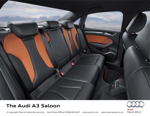 比起正式公佈前在Youtube上吊人胃口的蓋白布偽裝車之內裝格局,正式亮相的A3 Sedan之椅座上明顯少了菱格紋路的縫線裝飾,不過黑色與土黃色的雙色搭配再加上頗為熱血的跑格化設計卻依然秉持預設風格。比起一般三門或五門掀背車型,四門房車版的A3有著更長的2640mm軸距,這代表這款全新產品擁有更寬敞的後座空間來襯托極富享樂性的全景式天窗;除極為舒適的座墊外,後座空間亦增設空調出風口來提昇乘坐性,另外,行李廂容積也有425公升的水準。電配項目方面,A3 Sedan將標配可收折式的七吋3D液晶顯示器,中控鞍座上亦配置MMI多媒體介面,高等級車型則標配更高階的MMI Navigation plus系統,以便乘客使用內建的衛星導航系統及64GB高容量SSD硬碟。賴震宇