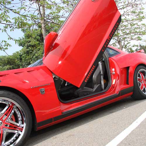 | 雖然同為鍘刀式車門,不過這部Humma H2所使用的為美國Vertical Door所推出的改裝套件,上掀幅度沒有LSD Doors那麼大,不過不影響人員進出。 |